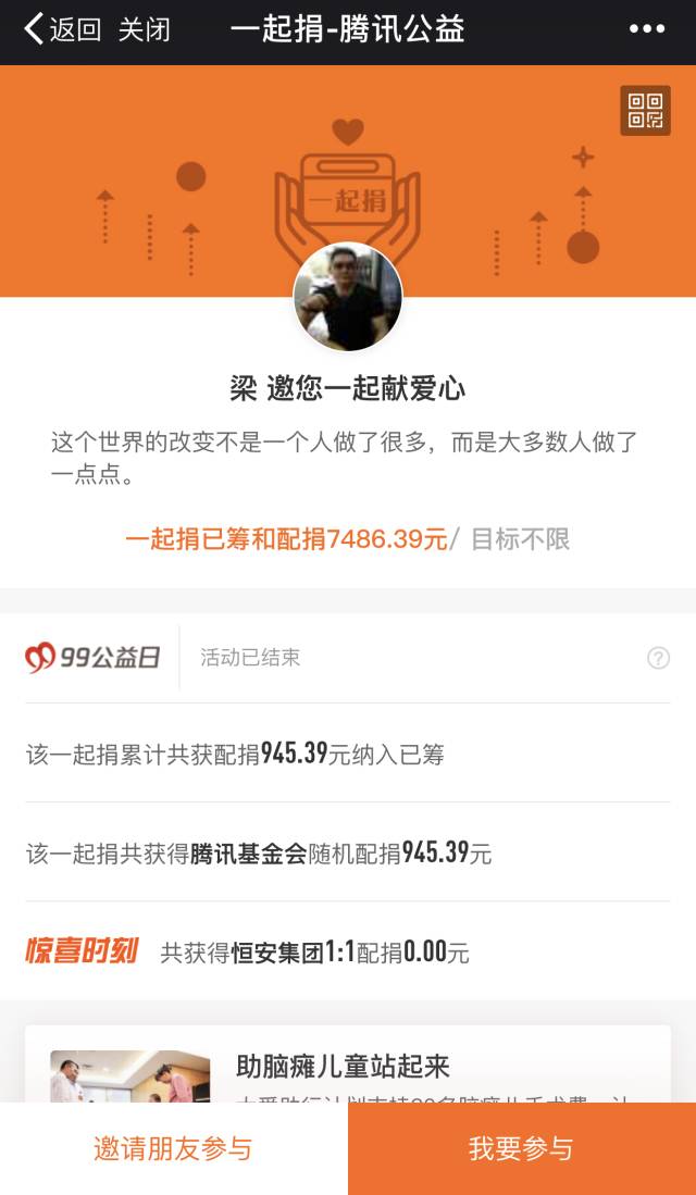 騰訊配捐共得RMB 3,3444.72元